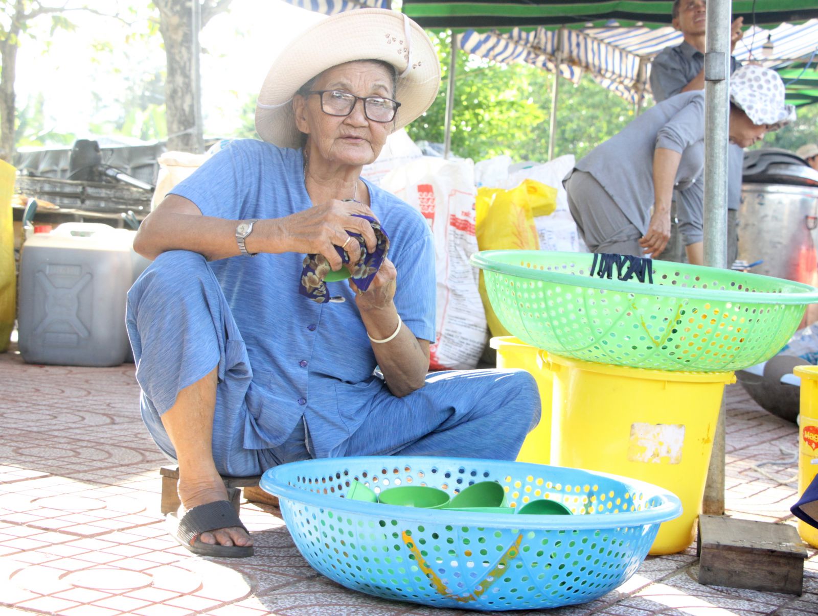 Ngoài 80 tuổi, bà Bùi Thị Ửng vẫn theo đoàn phục vụ nấu nướng trong ngày giỗ cụ Nguyễn