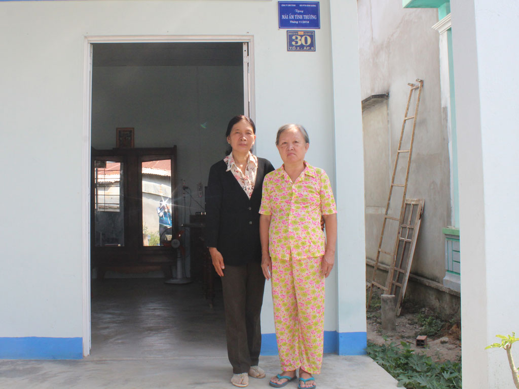 Bà Trần Thị Lệ (bìa phải) bên căn nhà tình thương