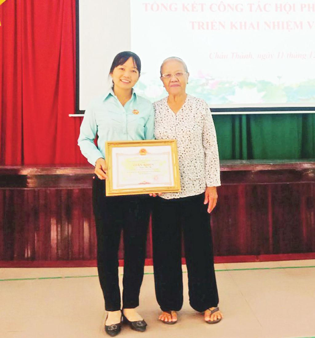Bà Trần Thị Be nhận giấy khen của Chủ tịch UBND huyện Châu Thành vì có nhiều đóng góp cho công tác xã hội