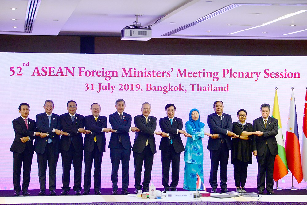 Tối 31/7, Các Bộ trưởng Ngoại giao ASEAN đã ra tuyên bố chung, trong đó kêu gọi các bên tránh làm tăng căng thẳng ở Biển Đông bằng việc cải tạo thực địa hay các sự cố nghiêm trọng.