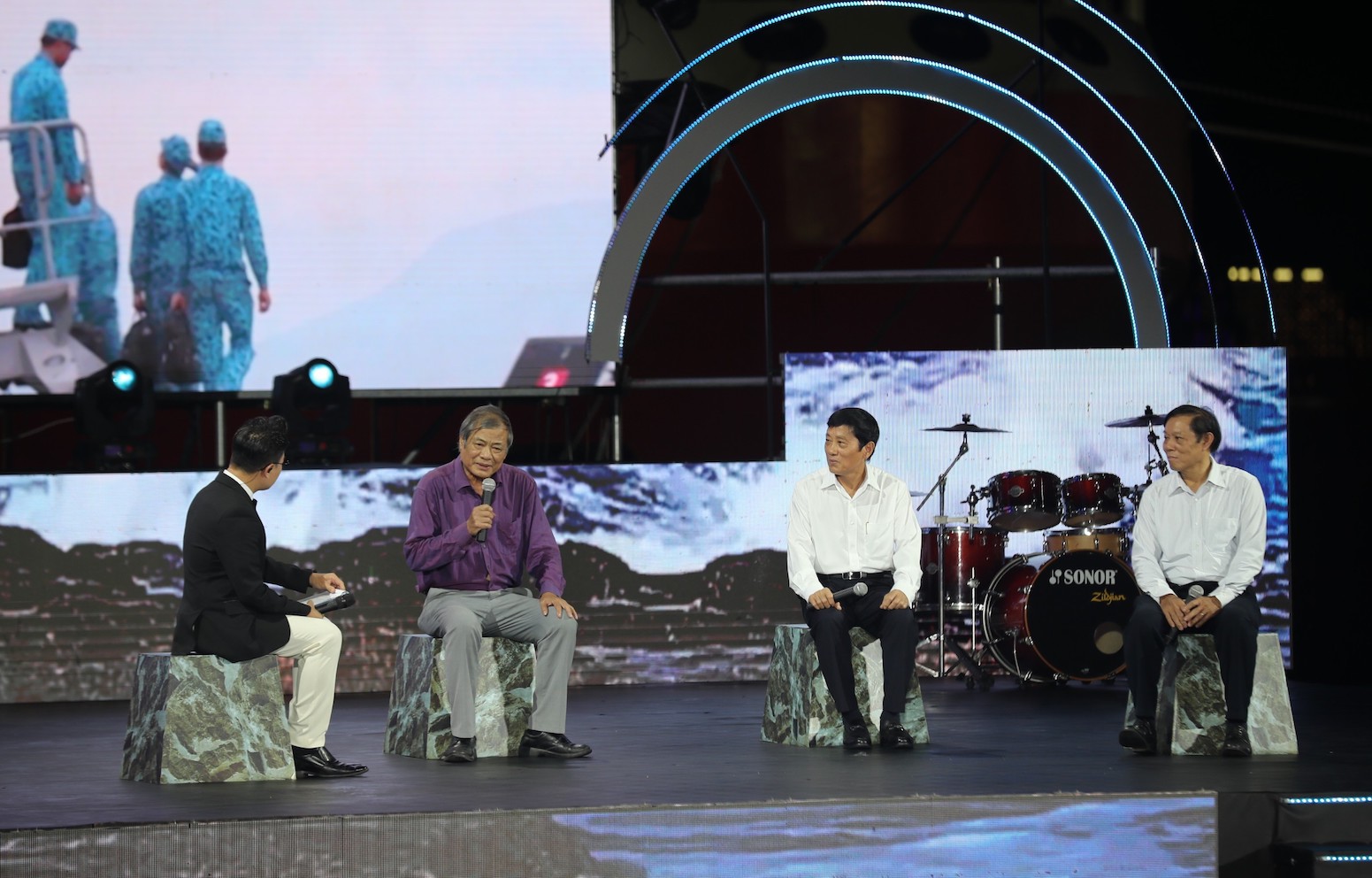 Sân khấu chính lấy ý tưởng từ mặt cầu cảng, với các tàu Hải quân xa xa làm nền tạo nên không gian đa chiều, phong phú, mang đến trải nghiệm sâu sắc cho khán giả.