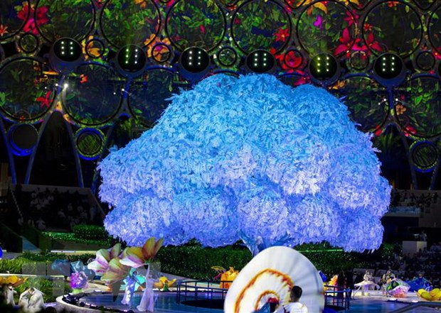 Các nghệ sỹ trình diễn tại lễ khai mạc Triển lãm thế giới EXPO 2020 tại Dubai, Các tiểu vương quốc Arab thống nhất, ngày 1/10. (Ảnh: THX/TTXVN)