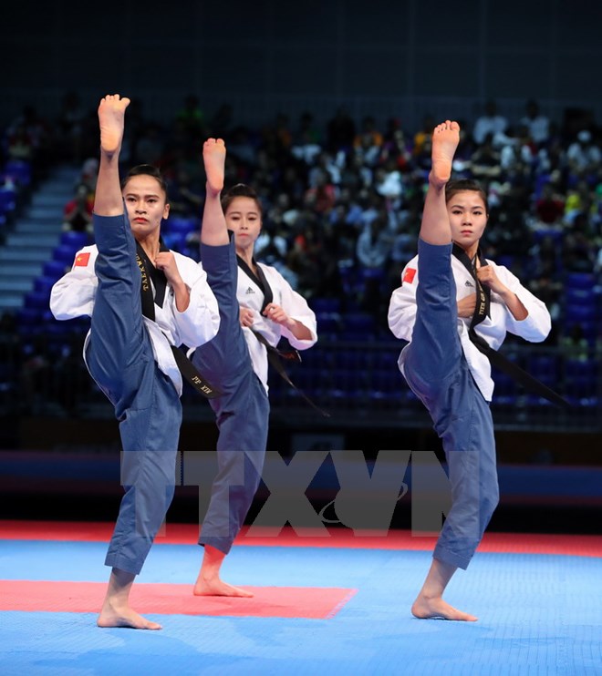 Trong khi đó, đội tuyển Taekwondo gồm Châu Tuyết Vân, Liên Thị Tuyết Mai, Nguyễn Thị Kim đã giành huy chương vàng với điểm trung bình 8,43 ở nội dung quyền biểu diễn đồng đội nữ./.