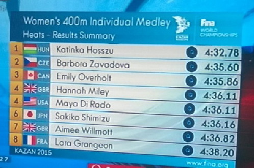 4. Maya DiRado (Mỹ): 4 phút 36,11 giây = 4. Hannah Miley (Anh): 4 phút 36,11 giây.