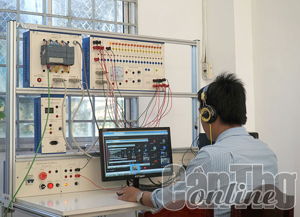 Buổi học thực hành thông qua ứng dụng công nghệ thông tin của giảng viên, sinh viên Trường Đại học Kỹ thuật - Công nghệ Cần Thơ. Ảnh: B.NG