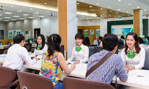 Khách hàng giao dịch tại Vietcombank chi nhánh TP Hồ Chí Minh. Ảnh: Hoàng Hải - TTXVN