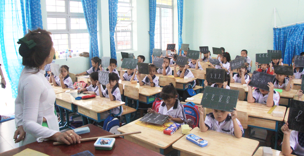 Trường TH Thuận Đạo (thị trấn Bến Lức, huyện Bến Lức) hiện có 989 HS với 24 lớp, trung bình 41,2 HS/lớp. Trong đó, lớp đông nhất là 46 HS. GV cũng vất vả trong việc quản lý, dạy học với điều kiện HS đông như vậy. Cô Nguyễn Thị Tuấn - GV lớp 4/2, Trường TH Thuận Đạo, thổ lộ: “Dạy lớp đông HS thì GV cực hơn nhiều. Ngoài giảng bài tại bảng phải di chuyển đến từng HS, có thể nói là hoạt động hết công suất, không có thời gian ngồi nghỉ ngơi”.