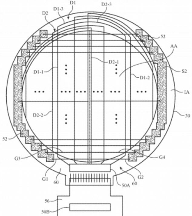 Trong bằng sáng chế mới, các kỹ sư của Apple giải thích: "Các mảng điểm ảnh thường có dạng vuông góc. Tuy nhiên, các mảng điểm ảnh vuông góc sẽ khó xếp vừa vặn bên trong một thiết bị có hình tròn. Ở các mặt hiển thị hình tròn có thể tồn tại những vùng bị thắt cổ chai, trong đó, các đường tín hiệu trở nên quá đông đúc, dẫn tới việc sử dụng thiếu hiệu quả diện tích hiển thị".