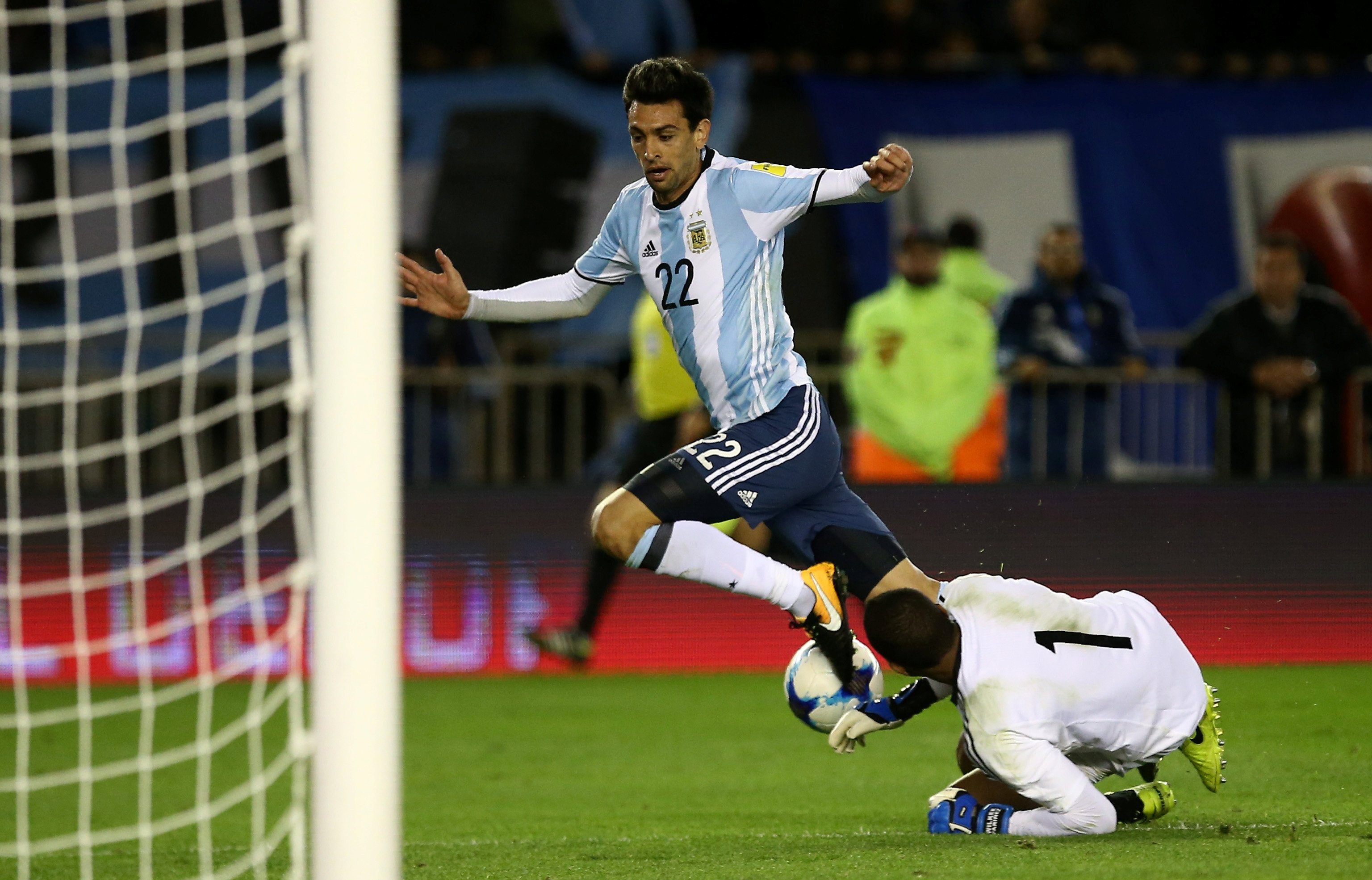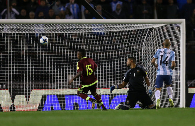 Đến phút 50, đội chủ nhà nhận một gáo nước lạnh khi Venezuela có pha phản công sắc lẹm, đặt Murillo vào thế đối mặt với thủ môn Sergio Romero. Và tiền đạo của Venezulea có pha dứt điểm tinh tế đánh bại thủ thành Romero, mở tỉ số trận đấu.
