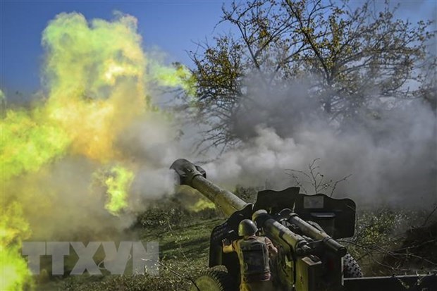 Binh sỹ Armenia nã pháo về phía lực lượng Azerbaijan tại khu vực tranh chấp Nagorny-Karabakh ngày 25/10/2020. (Nguồn: AFP/TTXVN)