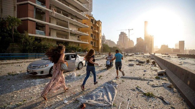 | Các vụ nổ tàn phá cả một khu vực rộng lớn ở Beirut. Ảnh: AP |