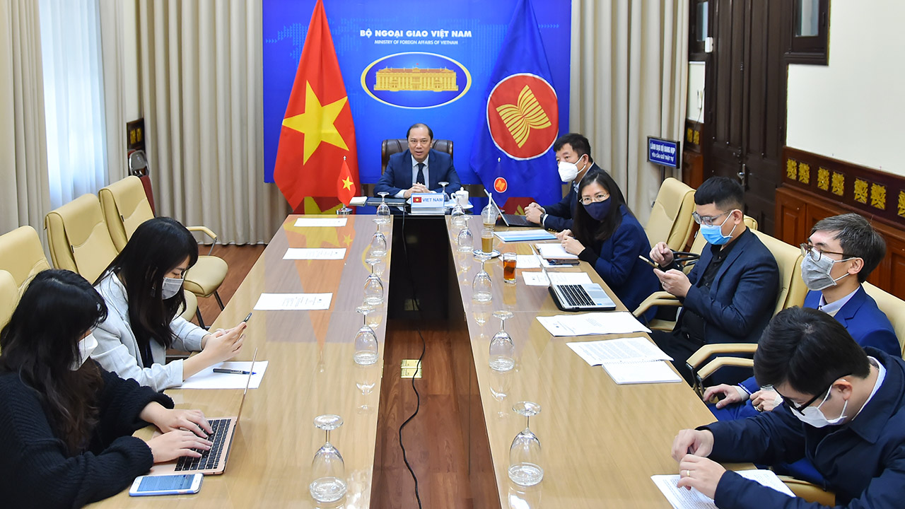 Ngày 05/01/2022, Campuchia – nước Chủ tịch ASEAN 2022 đã chủ trì Hội nghị quan chức cao cấp (SOM) ASEAN theo hình thức trực tuyến, nhằm rà soát công tác chuẩn bị cho Hội nghị hẹp Bộ trưởng Ngoại giao ASEAN (AMMR) dự kiến diễn ra vào ngày 18-19/01/2022 tại Xiêm Riệp, Campuchia. Thứ trưởng Ngoại giao Nguyễn Quốc Dũng, Trưởng SOM ASEAN Việt Nam đã dẫn đầu đoàn Việt Nam tham dự Hội nghị.