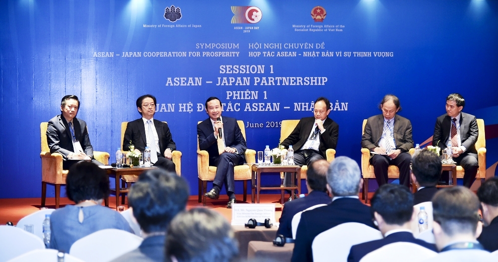 Trong khuôn khổ Hội nghị Chuyên đề “Quan hệ ASEAN-Nhật Bản vì thịnh vượng”, sau Lễ Khai mạc vào sáng ngày 04/6/2019 tại Hà Nội, đã diễn ra Phiên thảo luận chuyên đề về Tổng quan Quan hệ Đối tác ASEAN-Nhật Bản. Thứ trưởng Ngoại giao, Trưởng SOM ASEAN của Việt Nam Nguyễn Quốc Dũng và Thứ trưởng Ngoại giao, Trưởng SOM Nhật Bản Takeo Mori đã tham dự và phát biểu dẫn đề tại phiên thảo luận, cùng với sự tham gia của các diễn giả chính gồm đại diện chính phủ, chuyên gia nghiên cứu và học giả có uy tín của ASEAN và Nhật Bản. Phiên thảo luận có sự tham gia đông đảo của các quan chức chính phủ và giới nghiên cứu học thuật đến từ các nước ASEAN và Nhật Bản.