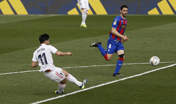 Asensio (trái) ghi bàn vào lưới Eibar ở vòng 29 La Liga. Ảnh: Reuters