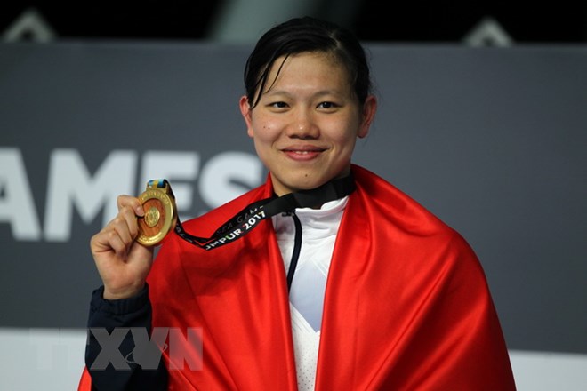 Vận động viên Nguyễn Thị Ánh Viên nhận huy chương vàng tại SEA Games 29. (Ảnh: Quốc Khánh/TTXVN)