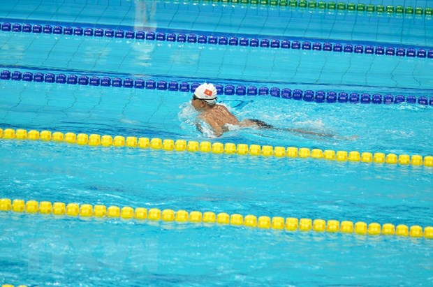 Đoàn Thể thao Việt Nam giành tấm Huy chương Vàng duy nhất nhờ công Vận động viên Lê Tiến Đạt (hạng thương tật SB5) ở nội dung bơi ếch 100m. (Ảnh: TTXVN phát)