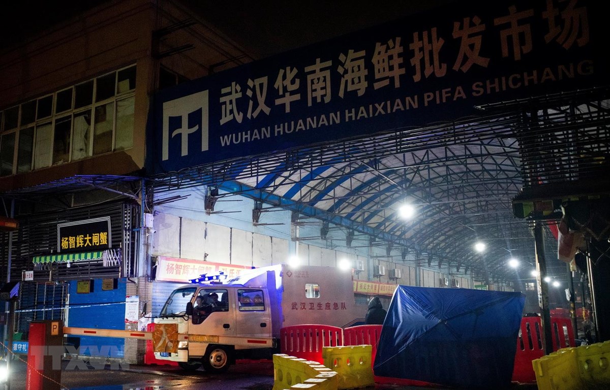Chợ hải sản Hoa Nam ở Vũ Hán, tỉnh Hồ Bắc, Trung Quốc, bị đóng cửa ngày 11/1/2020, sau khi phát hiện các bệnh nhân nhiễm COVID-19. (Ảnh: AFP/ TTXVN)