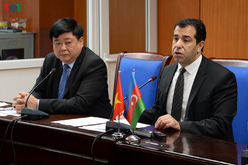 Đại sứ Azerbaijan Anar Imanov (bìa phải) ngồi cạnh Tổng giám đốc VOV Nguyễn Thế Kỷ trong một sự kiện tổ chức tại trụ sở VOV vào tháng 12/2019. Ảnh: Trung Hiếu/VOV.VN.