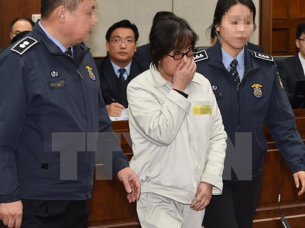 Bà Choi Soon-sil (giữa) tại Tòa án quận trung tâm Seoul ngày 5/1/2017. (Nguồn: YONHAP/TTXVN)