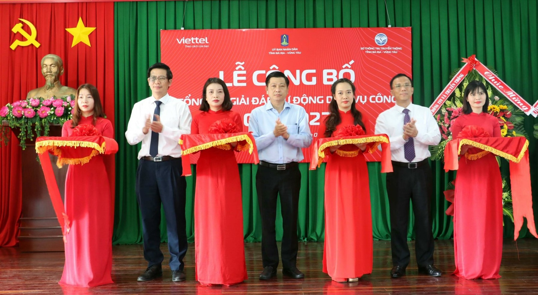 | Các đồng chí lãnh đạo cắt băng chính thức công bố Tổng đài giải đáp tự động dịch vụ công 0254.1022. |