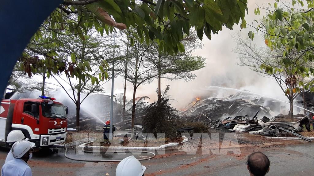 Vào lúc 11 giờ, theo ghi nhận của phóng viên Thông tấn xã Việt Nam tại hiện trường, toàn bộ nhà xưởng chứa hạt điều đã bị sập, khói vẫn bao phủ nghi ngút. Thiệt hại sơ bộ ước tính lên đến con số hàng trăm tỷ đồng.