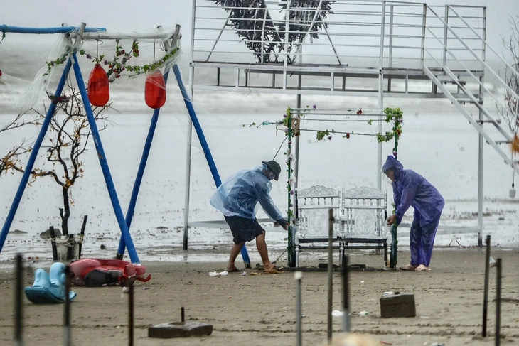 Người dân ở Móng Cái (Quảng Ninh) di chuyển đồ đạc ứng phó với bão số 1 - Ảnh: NGUYỄN KHÁNH