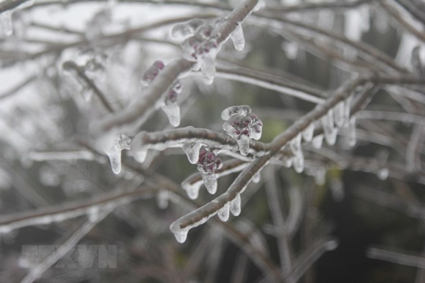 Băng giá bám vào cành cây, ngọn cỏ tại Mẫu Sơn. (Ảnh: Quang Duy/TTXVN)