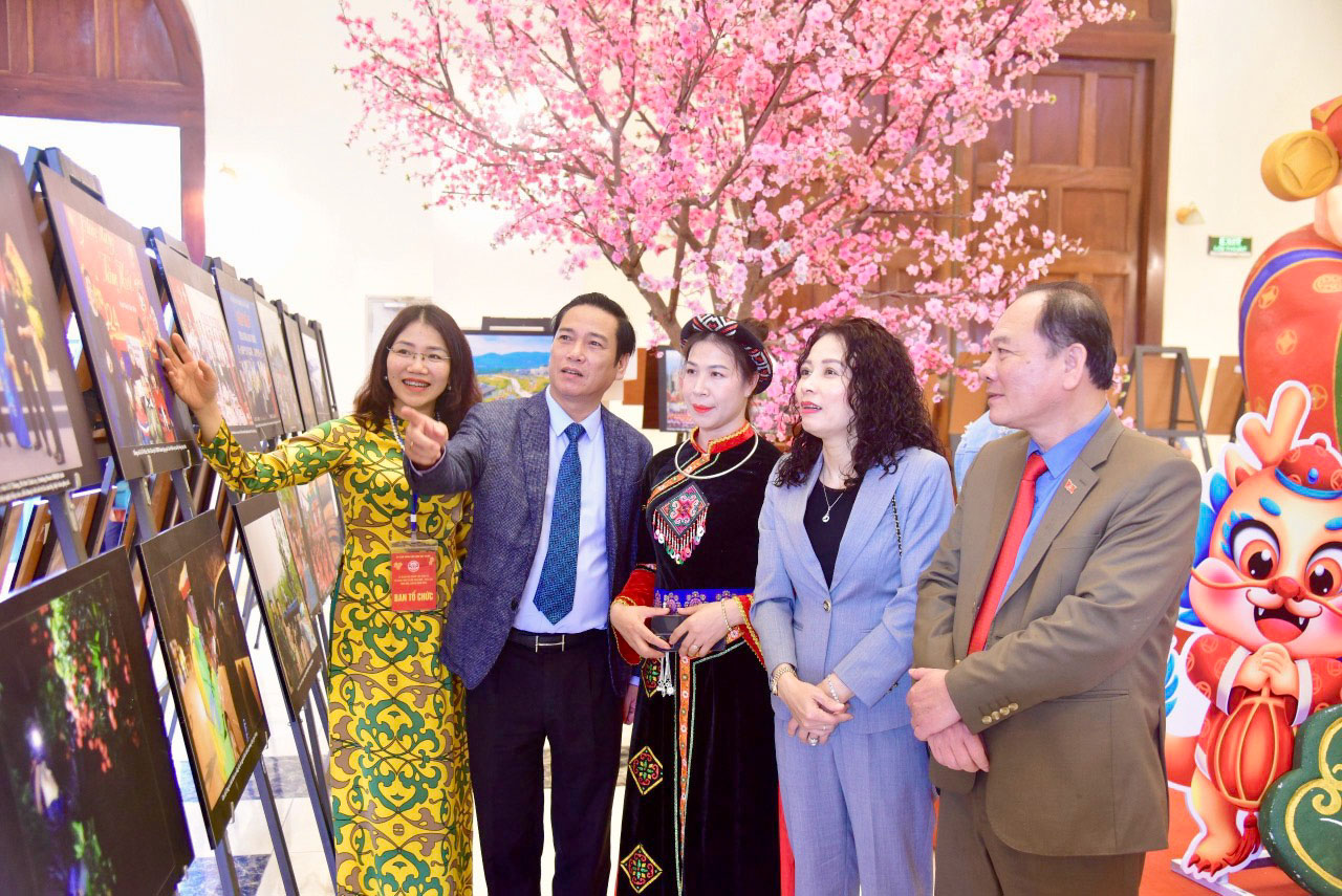 | Các đại biểu tham quan gian trưng bày ảnh tại Hội báo Xuân. |