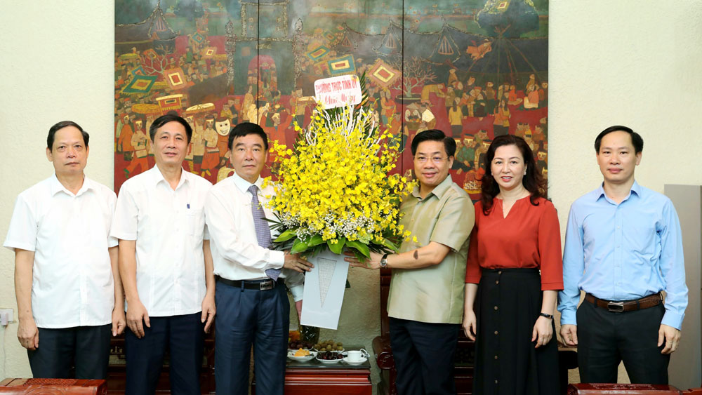 Nhân dịp này, thay mặt lãnh đạo tỉnh, các đồng chí Dương Văn Thái và Lê Thị Thu Hồng tặng hoa chúc mừng Ban Tuyên giáo Tỉnh ủy.