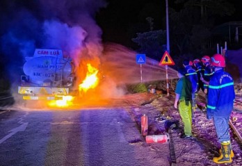 ![]() | Xe bồn chở xăng bị nổ lốp, bốc cháy lúc rạng sángĐang lưu thông trên đường Hồ Chí Minh (quốc lộ 14, đoạn qua tỉnh Gia Lai), xe bồn chở xăng biển kiểm soát 43C-075.18 bất ngờ bị nổ lốp bốc cháy dữ dội. |