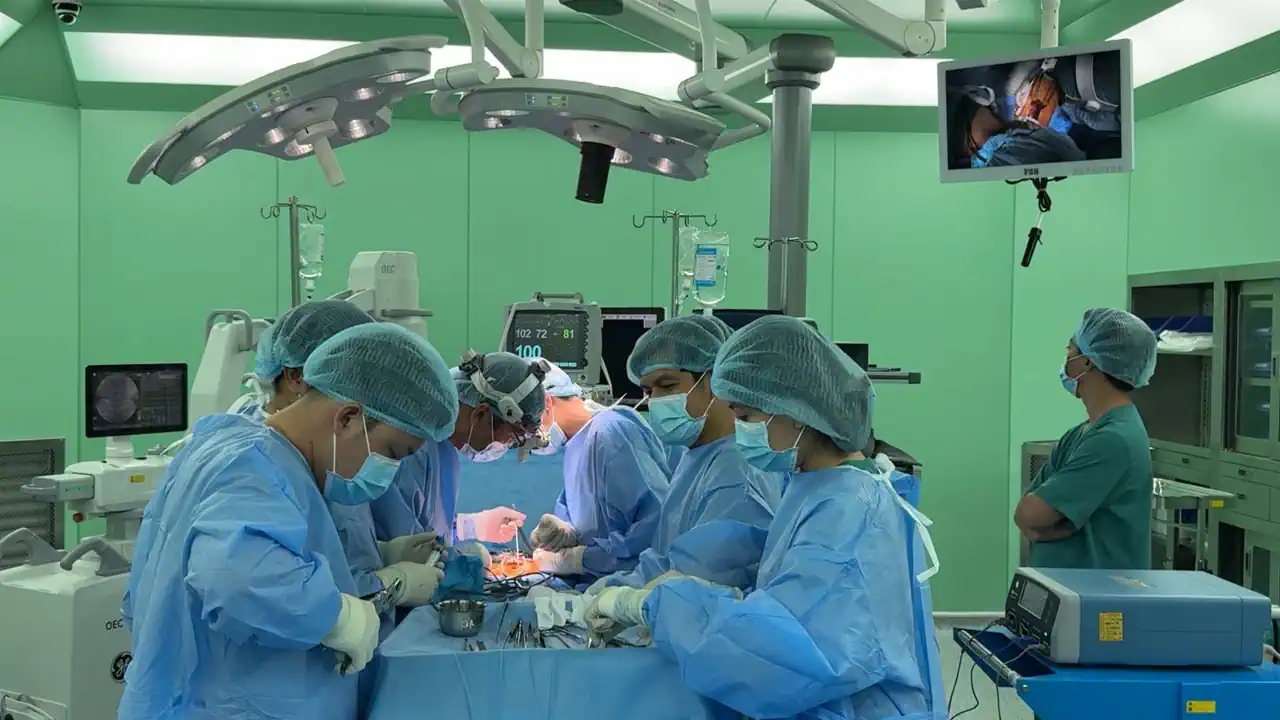 Qua hội chẩn, ê-kíp bác sĩ BV Đại học Nam Cần Thơ và ThS.BS Ngô Văn Quang Anh, Phó trưởng khoa Ngoại thần kinh, BV Trung ương Huế tiến hành phẫu thuật vi phẫu lấy u tủy sống. Ca phẫu thuật kéo dài gần 4 giờ, toàn bộ khối u được loại bỏ, bảo vệ an toàn cấu trúc tủy sống và rễ thần kinh cho bệnh nhân.