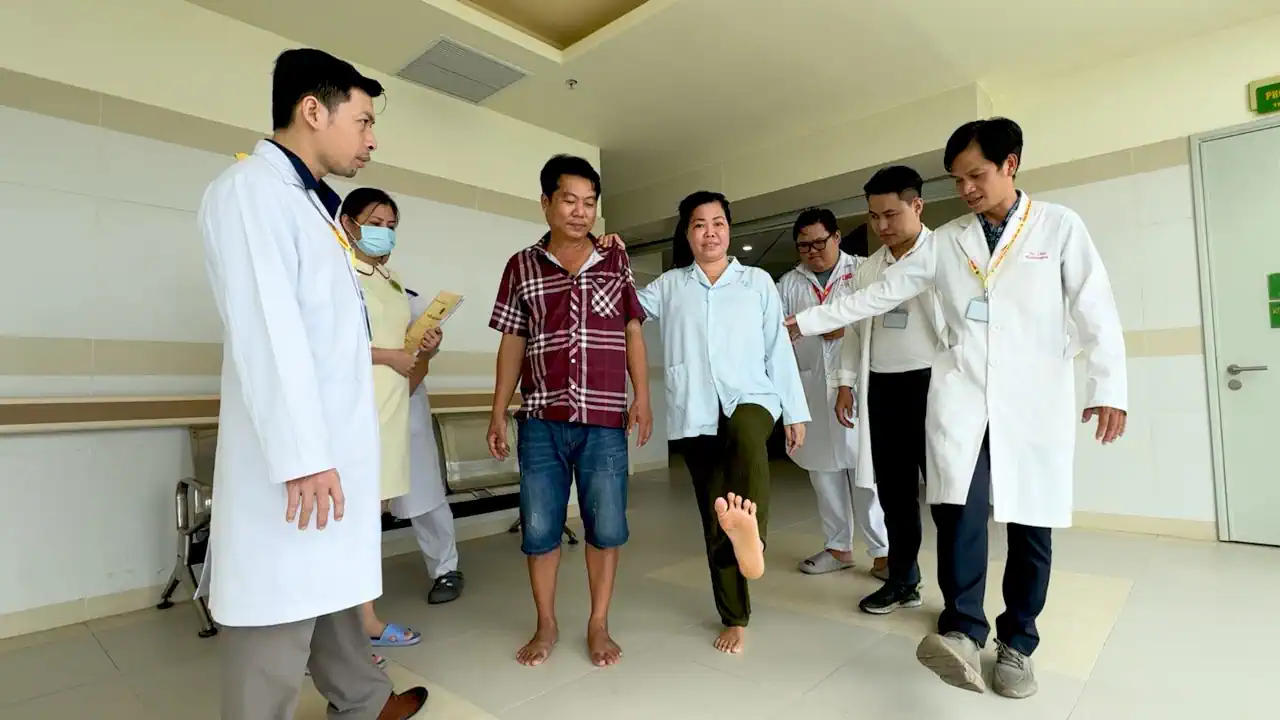 Theo các bác sĩ, bệnh nhân sau khi xuất viện cần tiếp tục tập vật lý trị liệu và phục hồi chức năng vận động, tái khám theo dõi định kỳ để đánh giá sự hồi phục vận động 2 chân.