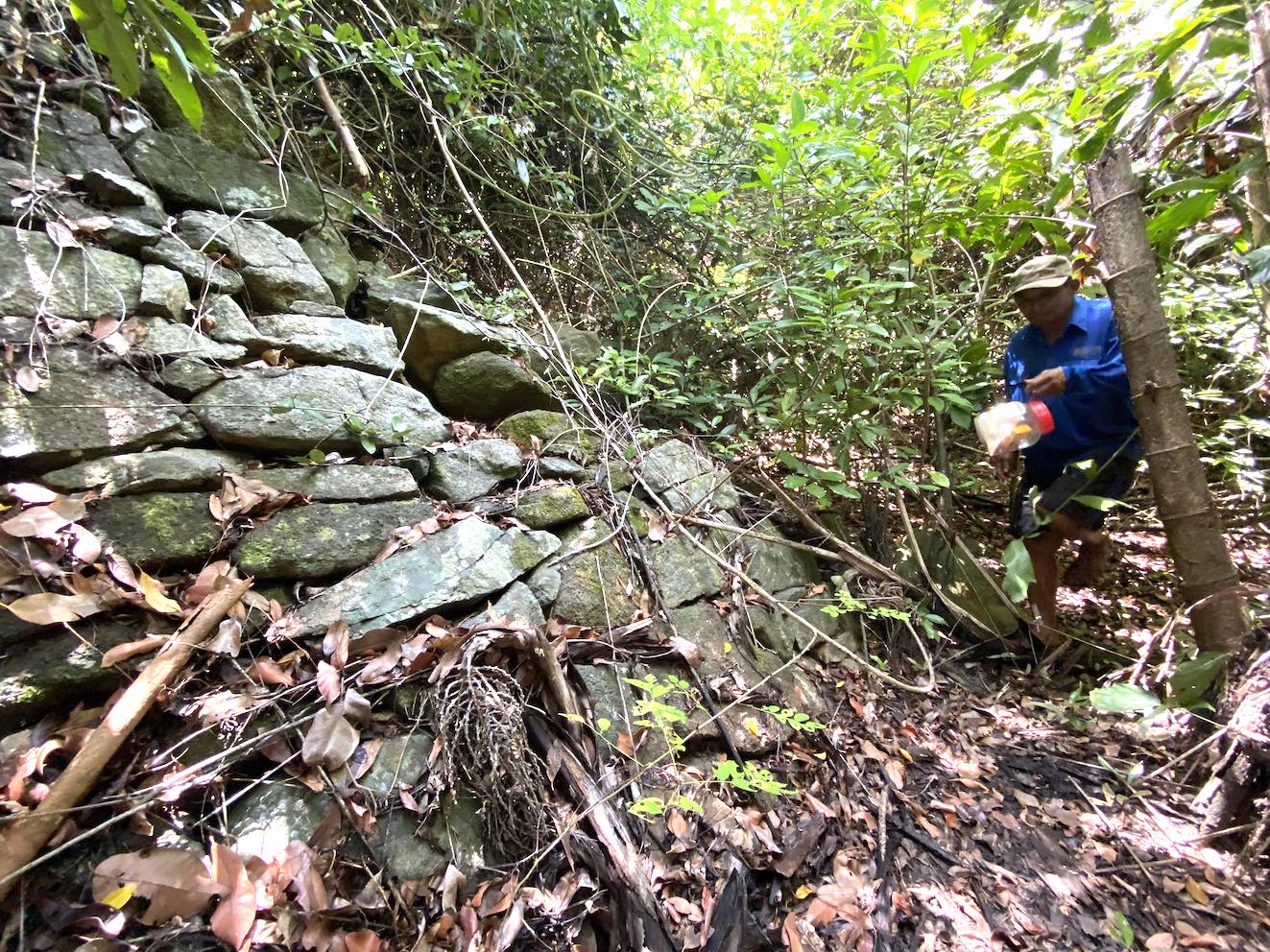 | Một góc bờ thành được xây bằng đá còn nguyên vẹn của đồn Nam Chơn thuộc làng Chơn Sảng. |