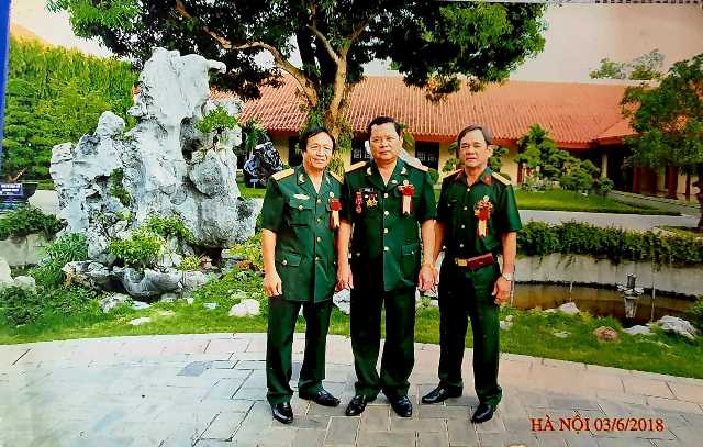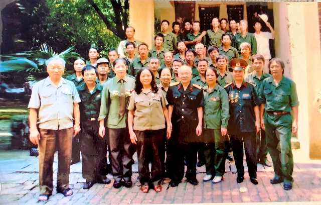 | Cựu quân nhân Lê Quốc Hùng, ngoài cùng bên phải ảnh cùng các đồng đội chụp kỷ niệm tại nhà Đại tướng Võ Nguyên Giáp (Ảnh: Nhân vật cung cấp) |