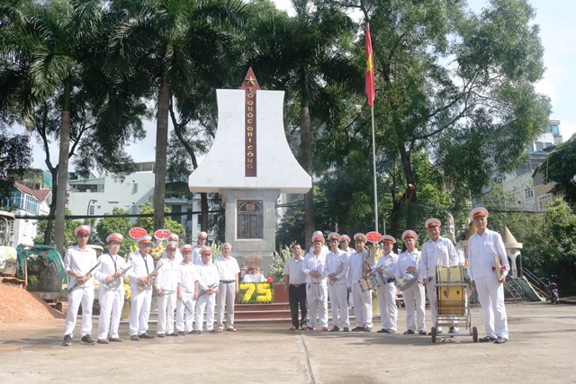 | Các thành viên câu lạc bộ cựu quân nhân Phùng Khoang và dàn kèn hơi nhà thờ Phùng Khoang tại Đài tưởng niệm Tổ quốc ghi công nhân kỷ niệm 75 năm Ngày Thương binh liệt sỹ (Ảnh: Nhân vật cung cấp) |