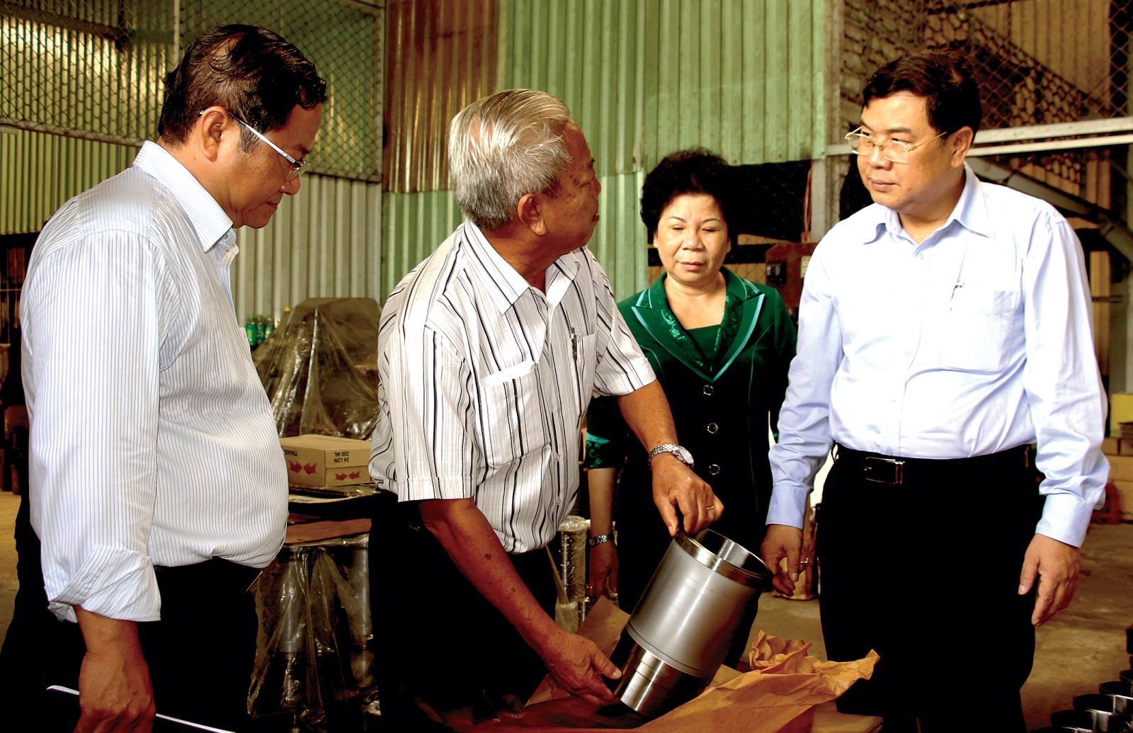 Lãnh đạo thành phố thăm Doanh nghiệp tư nhân cơ khí Sông Hậu. Ảnh: NAM HƯƠNG