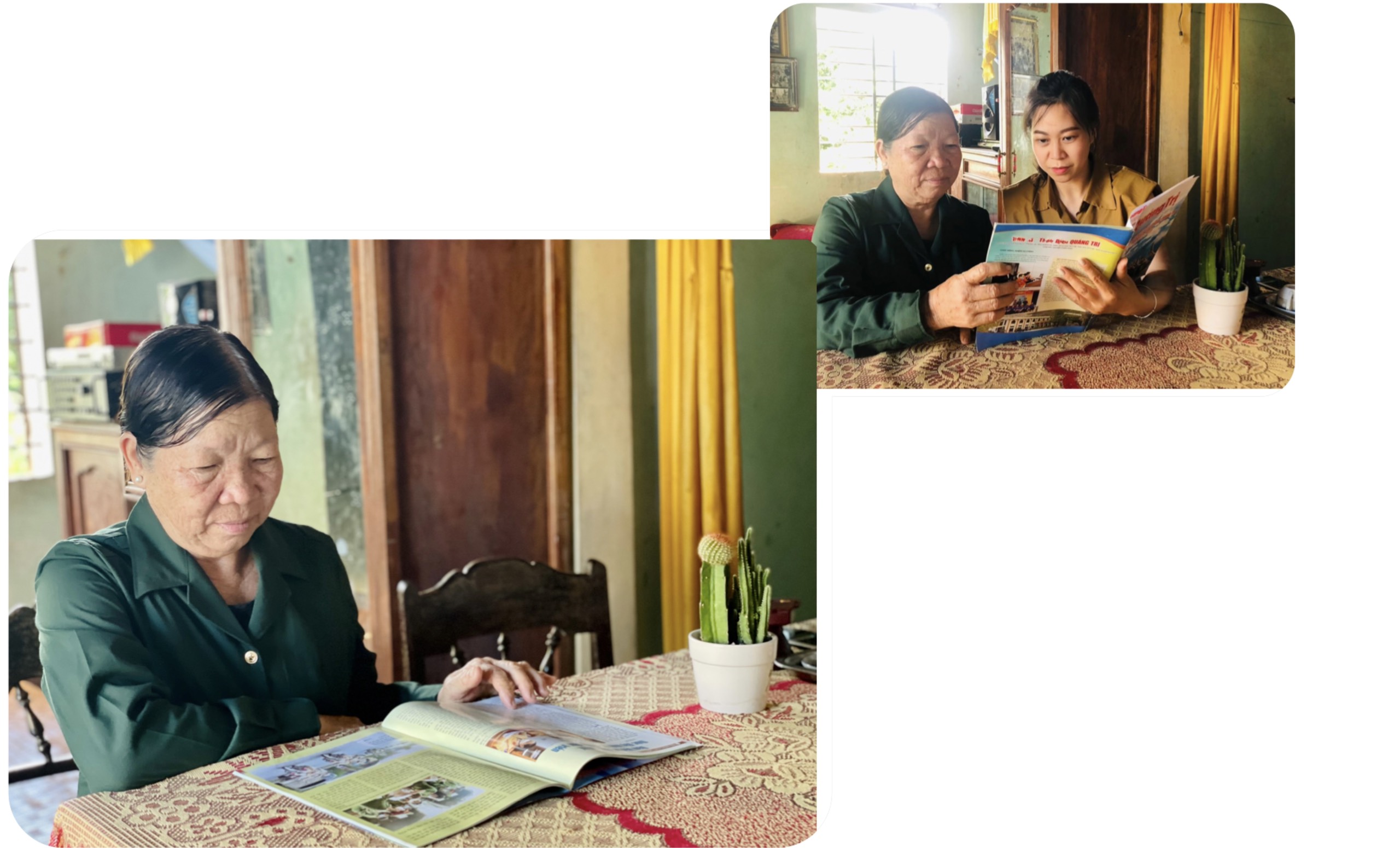 Bước vào căn nhà cấp 4, trước mắt chúng tôi là bức ảnh chở bộ đội và vũ khí tiếp sức cho Thành cổ được treo trang trọng, trong bức ảnh là hình ảnh một cụ già chèo đò với nụ cười hào sảng, bên cạnh là một thiếu nữ tay ôm chắc súng và nhiều chiến sĩ bộ đội giải phóng, ai nấy đều tươi cười. Được biết, bức ảnh do cựu phóng viên chiến trường Đoàn Công Tính chụp vào thời điểm đang diễn ra cuộc chiến 81 ngày đêm bảo vệ Thành cổ. Người lái đò trong bức ảnh là cụ Nguyễn Con (quê ở làng Giang Hến, xã Triệu Giang, huyện Triệu Phong) và người thiếu nữ tay ôm súng là O Thu, giờ tóc đã điểm bạc.