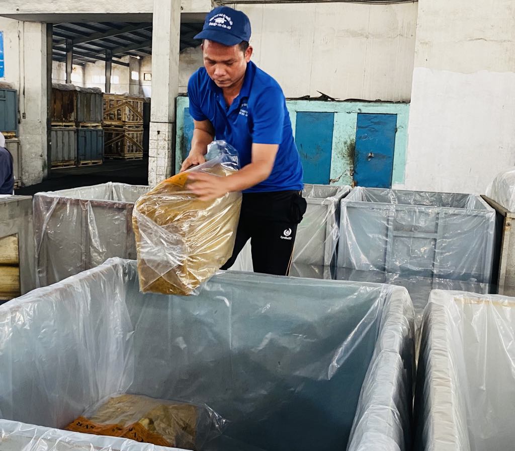 | Công nhân chế biến mủ cao su |