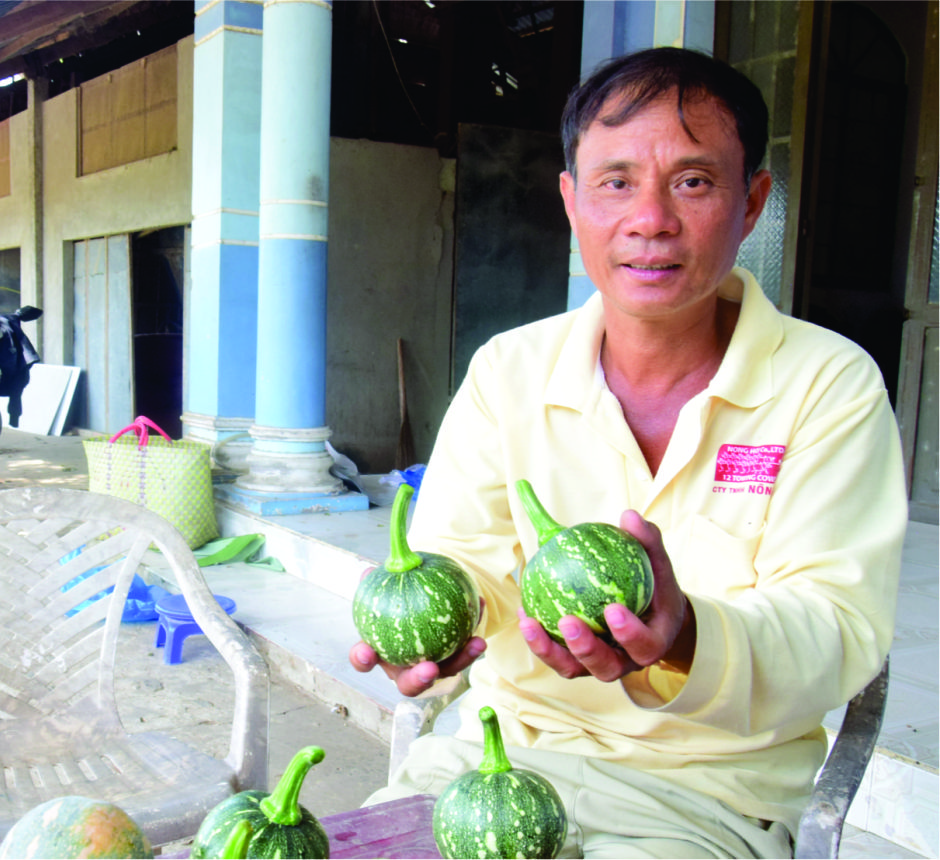 Ông Lý Thành Dân với sản phẩm bí non được trồng liên kết trong nông dân ở vụ màu mùa khô 2019-2020. Ảnh: HH