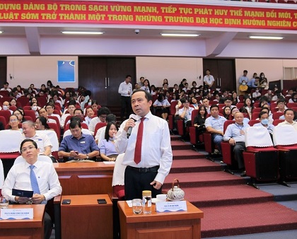 Chánh án Tòa án nhân dân tối cao đánh giá rất cao những thành tựu, cống hiến mà ĐHQG-HCM và Trường ĐH Kinh tế - Luật đã đóng góp cho đất nước trong thời gian qua. “Qua báo cáo và thực tiễn chứng kiến, tôi rất vui mừng về những cống hiến của nhà trường và cũng rất hy vọng với định hướng nghiên cứu hết sức đúng đắn mà nhà trường đã vạch ra, nhà trường sẽ tiếp tục thành công hơn nữa, để xứng đáng là một trung tâm đào tạo, nghiên cứu chất lượng cao”.