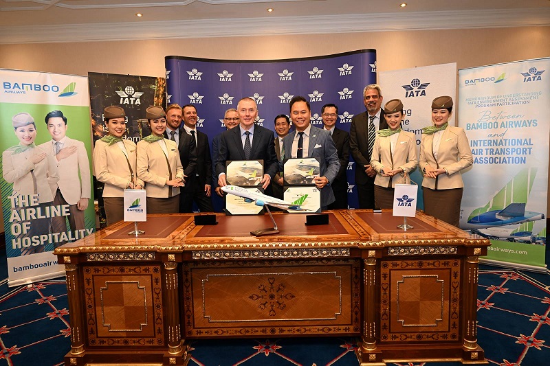 Ngày 21/6 (giờ địa phương) tại Doha, Qatar, Bamboo Airways và Hiệp hội Vận tải Hàng không Quốc tế (IATA) đã ký kết biên bản thoả thuận hợp tác về việc tham gia Chương trình đánh giá môi trường do IATA khởi xướng (IEnvA).