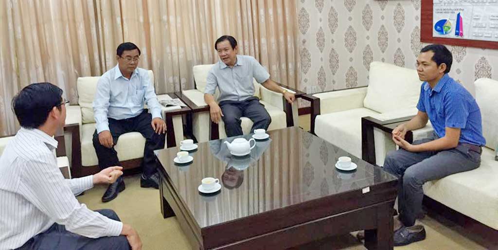 Từ trái sang phải: Phó Tổng Biên tập báo Long An: Lê Hồng Phước, Lê Hồng Thương;Tổng Biên tập Báo Pháp Luật - Mai Ngọc Phước; nhà báo Hữu Bằng.