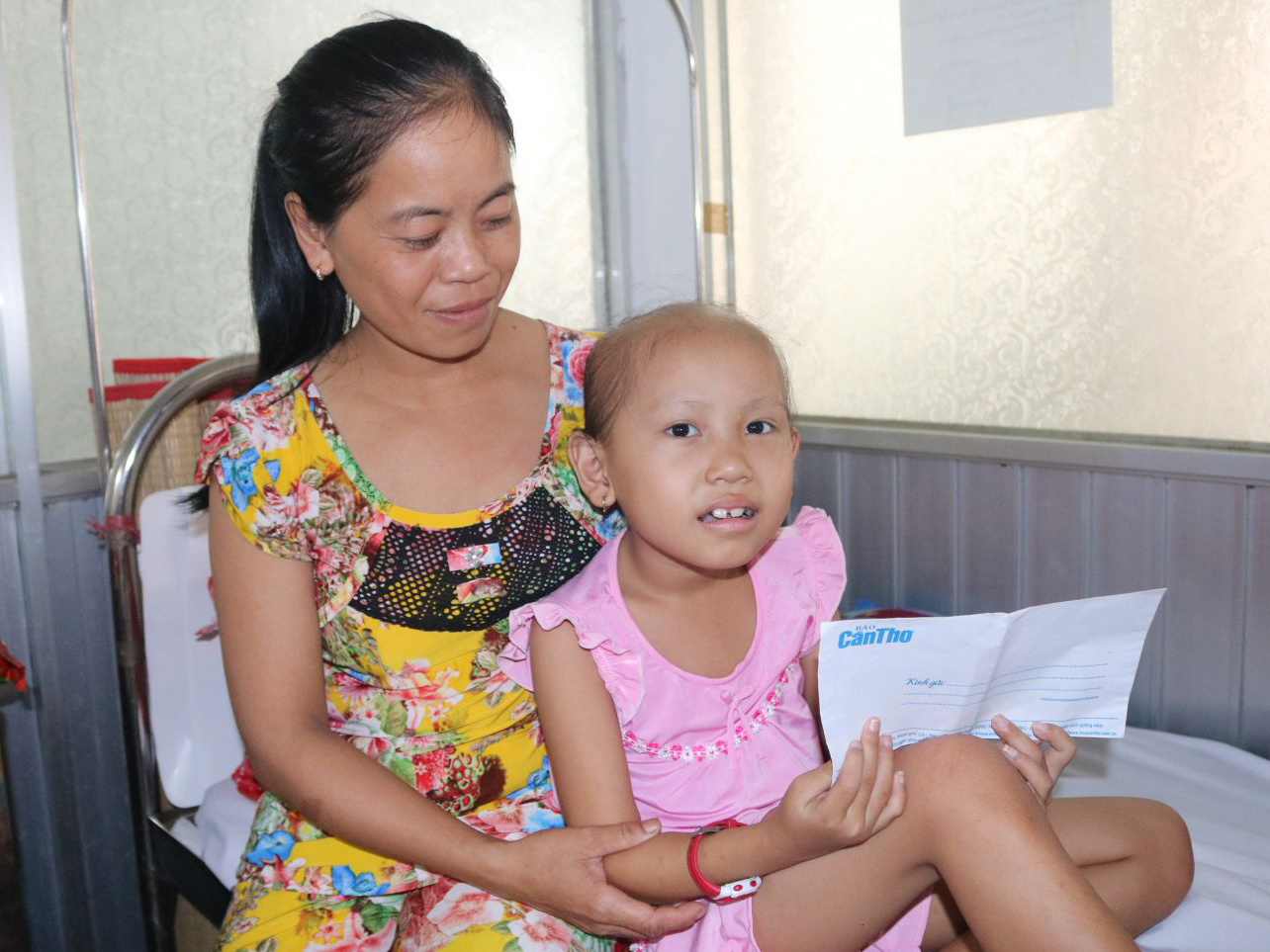 (CTO) - Phóng viên Báo Cần Thơ vừa đến thăm và trao 1,6 triệu đồng cho bé Trần Thị Trinh, bị ung thư buồng trứng, đang điều trị tại Bệnh viện Ung bướu TP Cần Thơ (xem bài "Xót lòng bé 7 tuổi bị ung thư buồng trứng" trên Báo Cần Thơ (báo in, ra ngày 3-5-2019)). Số tiền trên do bạn đọc Nguyễn Bá Khương gởi tặng 1.000.000 đồng, bốn bạn đọc không nêu tên gởi tặng 600.000 đồng.