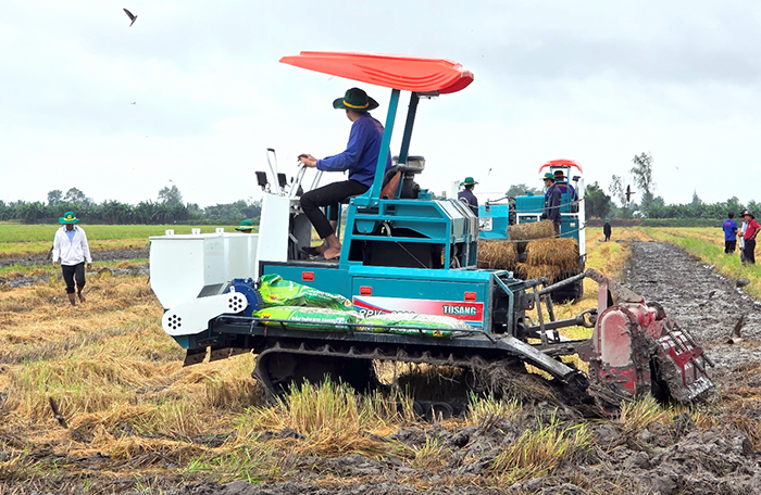 Nông dân TP Cần Thơ áp dụng cơ giới hóa để vùi rơm rạ gắn với việc xử lý rơm tại đồng bằng chế phẩm sinh học nhằm cải tạo đất và nâng cao hiệu quả sản xuất.