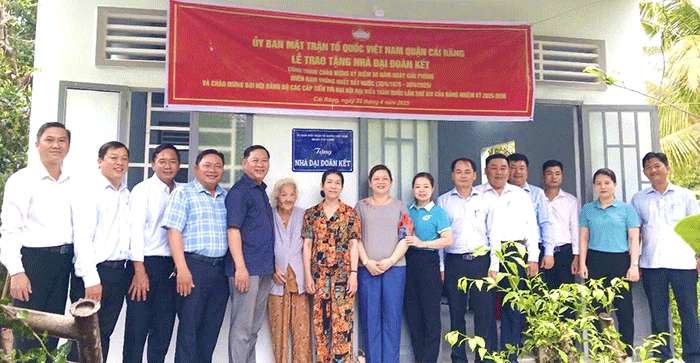 (CT) - Ngày 22-4, Ban Thường trực Ủy ban MTTQVN quận Cái Răng phối hợp tổ chức lễ bàn giao nhà Đại đoàn kết tặng gia đình ông Lâm Hửu Quí, hộ có hoàn cảnh đặc biệt khó khăn về nhà ở, ngụ tại khu vực 6, phường Hưng Thạnh. Đây là công trình chào mừng kỷ niệm 50 năm Ngày Giải phóng miền Nam, thống nhất đất nước (30/4/1975-30/4/2025), do Ủy ban MTTQVN quận Cái Răng thực hiện.