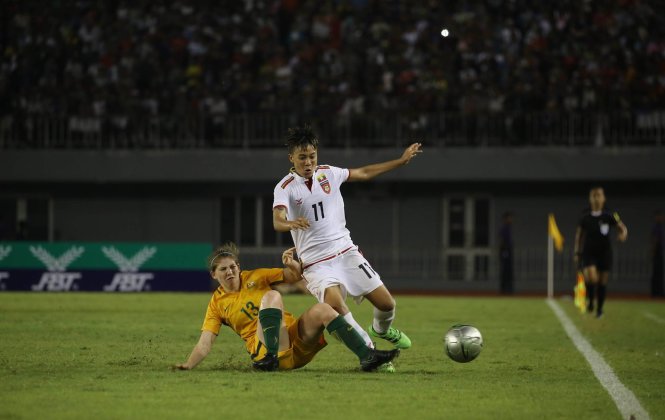 Hàng thủ VN cần cảnh giác trước Khin Moe Wai (11) - tác giả bàn thắng vào lưới U-20 Úc. Ảnh: MFF