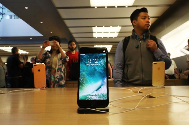 Giao diện màn hình khóa iOS 10 trên điện thoại iPhone 7.