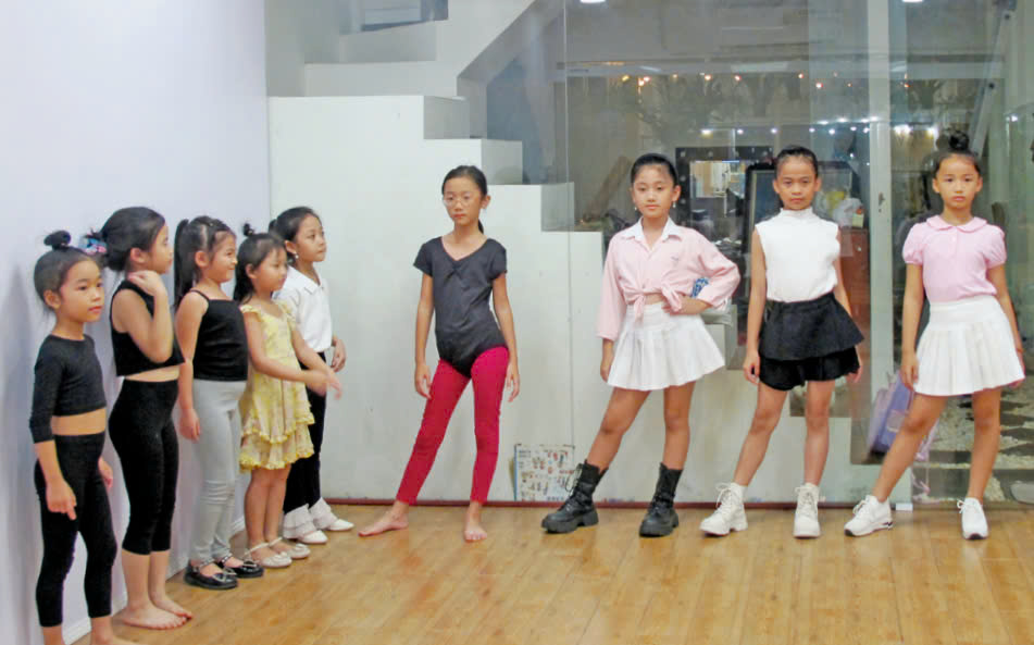 Em Cao Đặng Khánh Linh, Trần Thị Ngọc Mai (bên phải) chăm chỉ tập luyện cùng các bạn