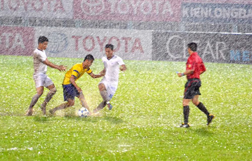 Vĩnh Long bất ngờ ngã ngựa trước An Giang trong cơn mưa nặng hạt - Ảnh: Anh Tuấn