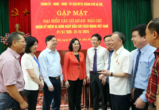 Nhân kỷ niệm 94 năm Ngày Báo chí cách mạng Việt Nam (21/6/1925-21/6/2019), chiều 18/6, tại Hà Nội, Thành ủy, HĐND, UBND, Ủy ban MTTQ Việt Nam thành phố Hà Nội tổ chức gặp mặt đại biểu các cơ quan báo chí.